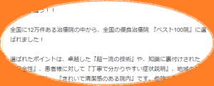 身バレしたくないので、整骨院の名前伏せるけど…全国12万ある整骨院から100位内に入ってる整骨院です。あちこち行って合わなかった私が通えているので、相当良いと思います。それに2ヶ月経った今も通っているから、それが答えだと思う。ただね…私の担当先生が、これ以上忙しくなってほしくないので行きたい人は探してください…。