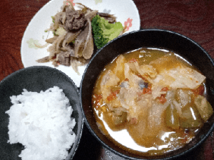 そして体を温める食事を冬は、特に意識して採っています。メンドイという理由で基本一汁一菜の食事ですが、汁物の中には数種類の野菜が入っていて具だくさんです。野菜の栄養素が流れても、汁物だったら全部飲めるから安心というズルです。そして最後は寝るという簡単な作業だけです。これならば出来ません?