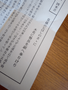 まずは【皇孫命が木花咲姫名をめとり給ふの兆ならば何事によらず】を訳していきます。これは【ニニギノミコトがコノハナノサクヤヒメと結婚できるならばどんな事柄でもよいと言った】と訳します。さぁ~こんな風にして次々と現代語に訳していきましょう。【正道を似て成す時は相叶ふされど】は【なので正しいことをもってすれば】
