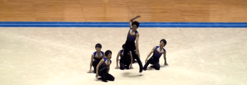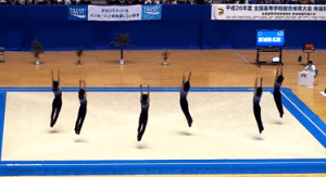 もう柔軟といえば、女子新体操のイメージだったんです。それが今や男子新体操は誰でも普通に出来る動作の1つです。得意不得意はあるとは思いますが、どのチームも180度の左右開脚を演技に取り入れています。ちなみに180度の前後開脚もあります。