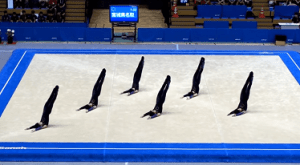 毎回技を観る度に「求愛やん」と思ってたので、なんかタンブリング以外で好きになった技です。実際に団体戦で行う技としては、揃って同じ深さで披露するのは難しい技のようです。ただ演技の中に必ず組み込まれるというワケではなさそうですね。