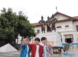 まずはMCの方が入ってのトーク(TikTokを始めたキッカケ、バスった時の状況、それぞれの印象深いお仕事1選、タイのおすすめスポット)、質問コーナー、プレゼント獲得戦、歌(花束のかわりにメロディーを)、アクロバットダンス(クール系)、告知、お見送り。これが1時間半で行われて、3部制でした。