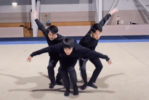 男子新体操特有の技が出てくると、やっぱり凄くてパフォーマンスとは違いました。ただ、きっと揃えなきゃいけない場所でズレてたりフラフラしていたので、とても残念に思ったチームです。いや体幹が弱い私は、出来ているだけ凄いとなるんだけど…ね?