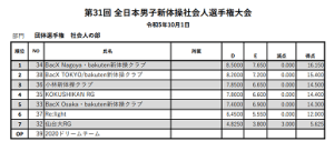 小林新体操クラブは、THE男子新体操って感じでした。すごく褒めているのだけど、この流れからすると今一つに思われそうよね?なんというか、今回の社会人団体は色んな系統に見えてたからTHE男子新体操っていうのが逆に新鮮なのよ(笑)