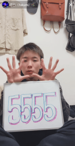 って慌てることなく琢巳くんが作業してたら、空気読んだ人が3人ほど減って「減りすぎ!フォローして!フォロー!!」となった次は5557人。「増えすぎ!外して!外して!!」で5554人。この遊びを数回繰り返して、5555人になった瞬間スクショタイム( *´艸`)