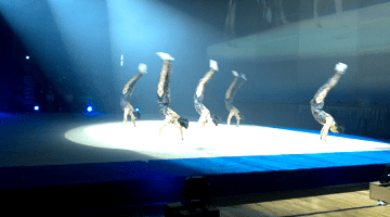 前回も照明を上手に使って凄かったんだけど、今回も凄かった。曲のリズムに合わせての照明の暗転に「うぉ~すげぇ~」って拍手喝采。なんだろう…男子新体操なんだけど男子新体操じゃなくなるんだよね。