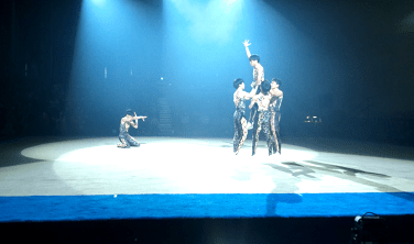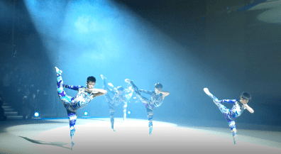 そんなのことはなかった…。照明を上手に使って指先まで神経がある感じで演技するので、男子新体操っていうよりもモダンダンスに近く芸術作品。私は3人と2人に別れて、腕を伸ばして求めあうようなシーンが好きだった。
