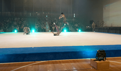 国士舘大学の男子新体操ってYouTubeで検索してもらうと、海外でもパフォーマンスしている映像が観れます。そこでは人数も居たからもあるけどエンタメ色が強いので、OGFでは男子新体操を見せるという感じで構成しているのかな?